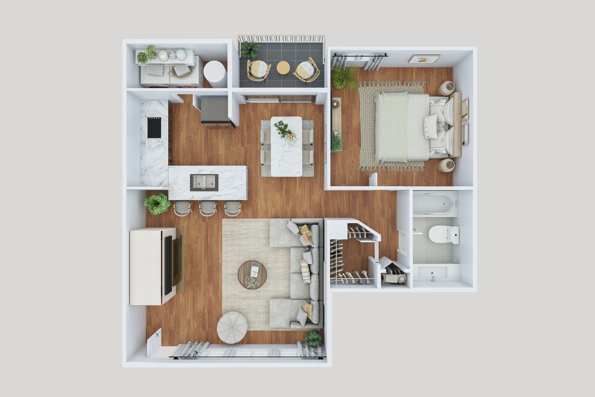 • Hardwood-style flooring throughout